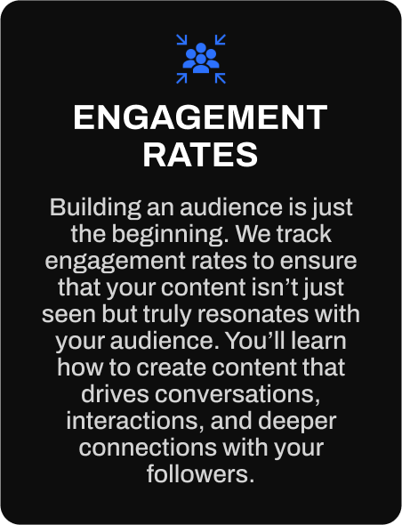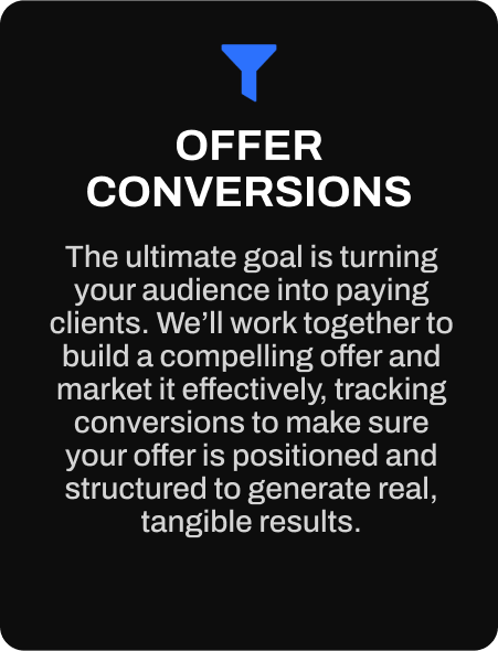 At every stage of the 1:1 Purpose Program, we track key metrics to ensure your brand is growing and your offer is on track to succeed. Whether it’s follower growth, engagement rates, or offer conversions, we’ll make sure you’re seeing real progress.