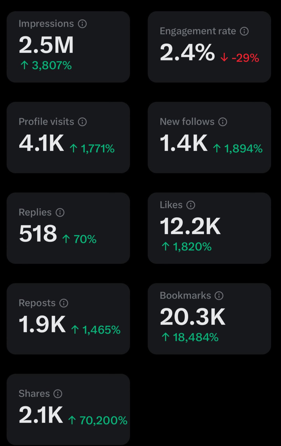 When I first started writing on X, I was all over the place.Alex was consistently posting viral content and taught me how. I was able to quickly understand the value of using specific numbers, bold claims, and reliability.His methods are easy to implement and I started to see my posts start to pop within the same week.